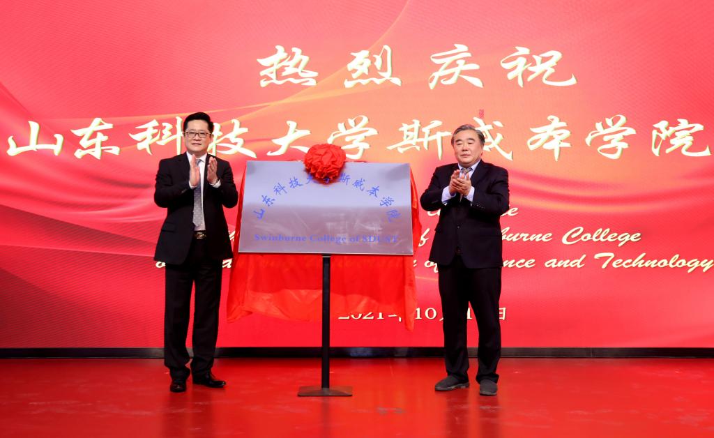 姚庆国和李新庆为山东科技大学斯威本学院揭牌