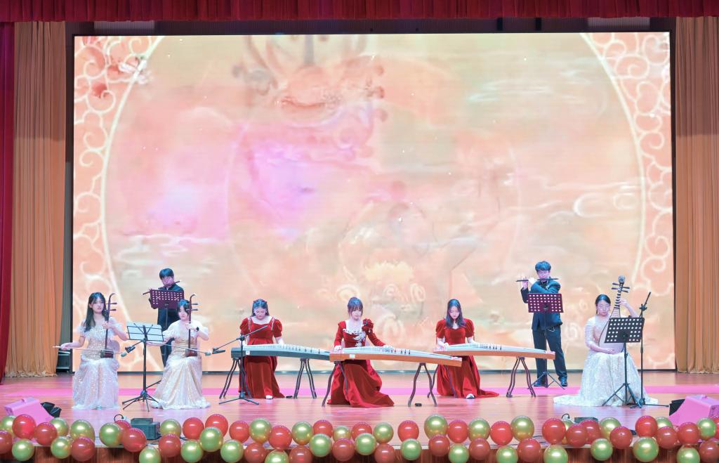 晚会以“门外有只胖橘”乐队带来的开场歌曲瞬间点燃全场热情,强劲的节奏与飞扬的歌声,迅速将观众带入晚会的热烈氛围。整场晚会紧扣主题,分“山海相逢 惟真同心”“弦歌不辍 奋楫争先”“乘风破浪 志泽四方”三个篇章依次展开。13个节目涵盖了歌曲、舞蹈、情景剧、武术、朗诵、器乐、走秀、配音等多元艺术形式,展示了校区学生的青春活力与艺术气息。