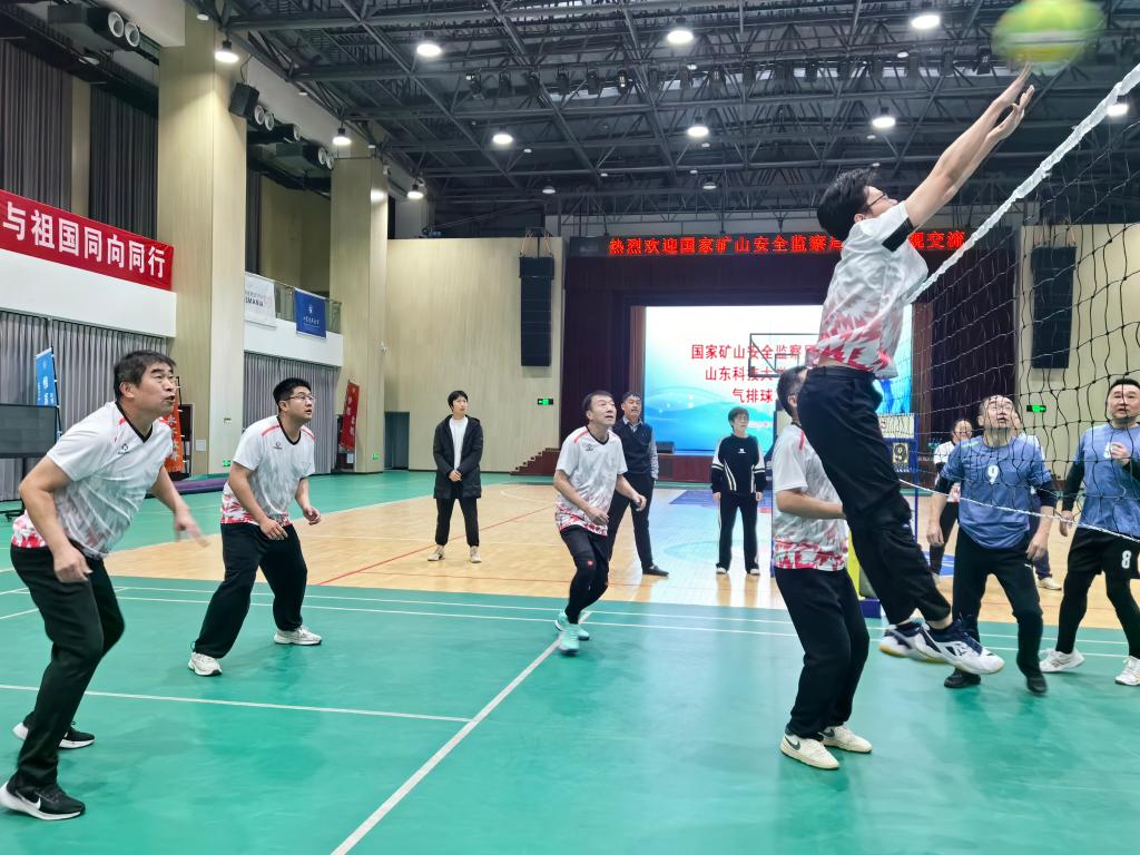 12月30日,山东科技大学济南校区艺体楼二楼场馆内气氛热烈,一场精彩的气排球友谊赛在此举行。主场作战的山东科技大学队与国家矿山安全监察局山东局队展开激烈交锋,最终科大队凭借出色发挥,在男子排球与混合排球两个项目中均以2:1战胜对手,为本次交流赛画上圆满句号。