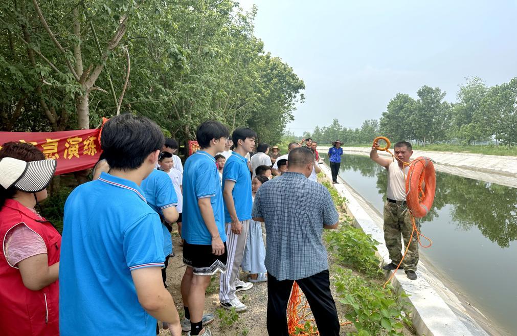图为归昌乡专业人员进行防溺水演练讲解