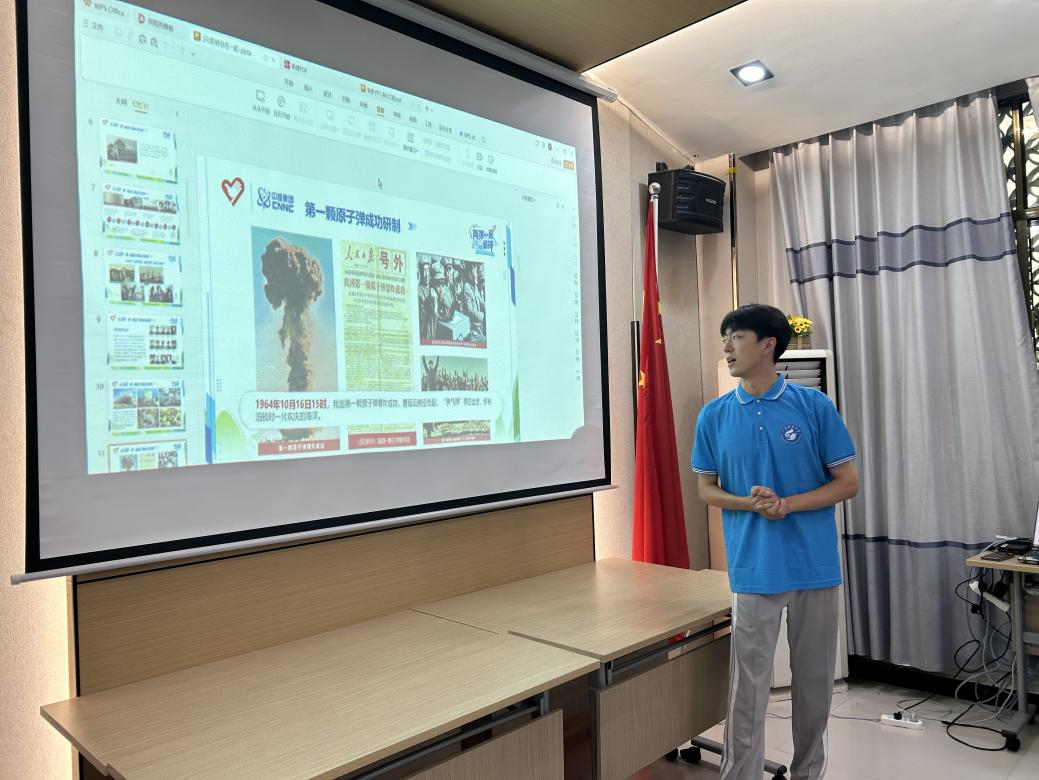 图为团队成员赵品皓正在汇报“两弹一星”元勋留学报国精神