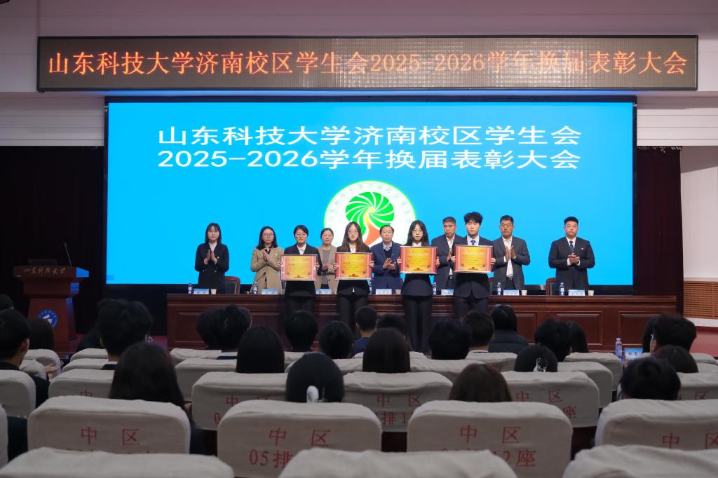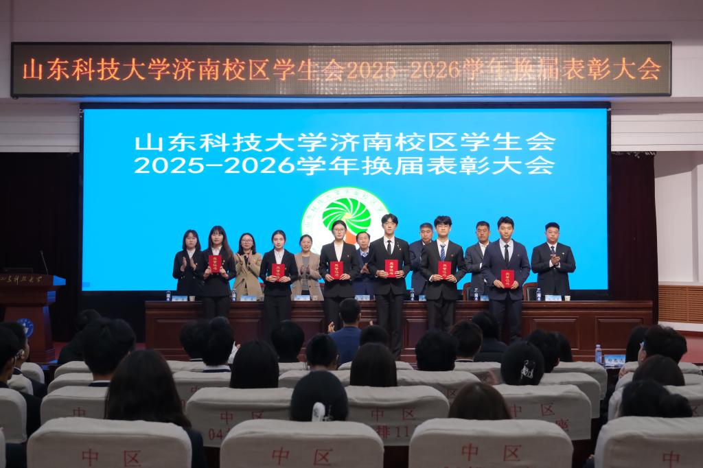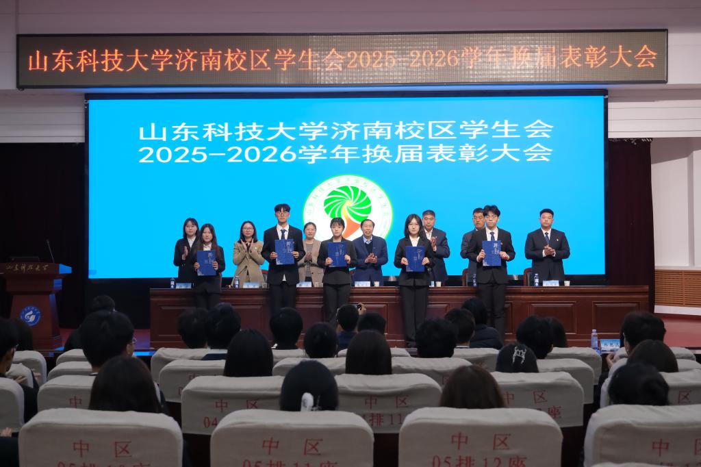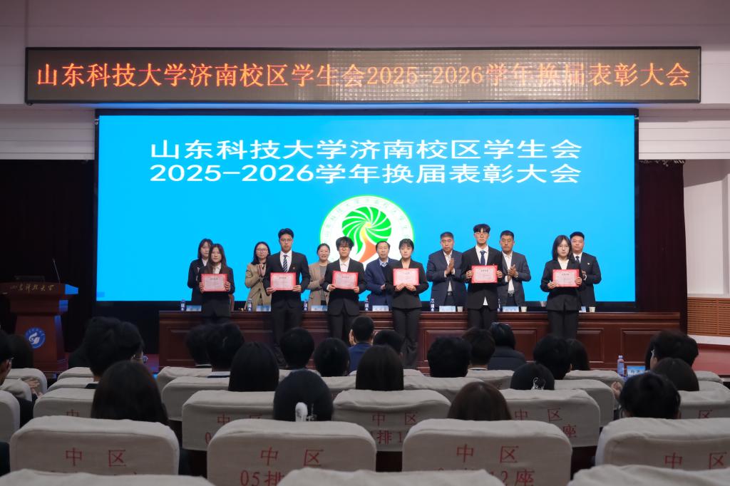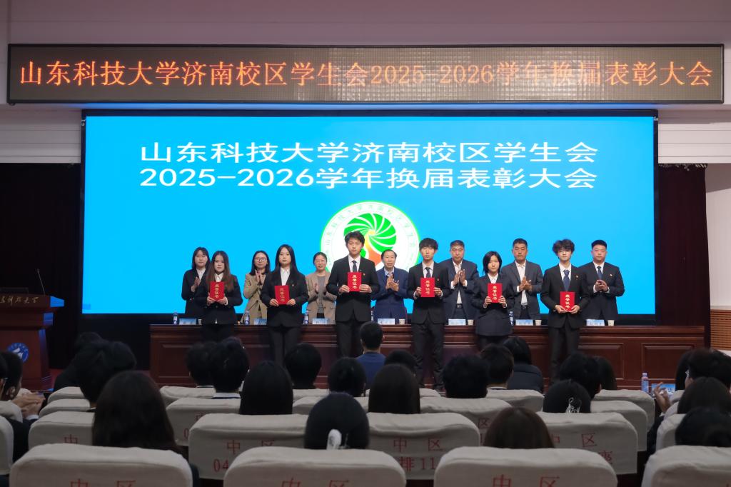 会上,校区学团工作部副主任赵长青宣读《山东科技大学济南校区2025-2026学年学生会成员名单》,校团委副书记兼校区学团工作部副主任韩冰宣读《关于表彰2024-2025学年济南校区学生会优秀部门、优秀学生干部及优秀学生干事的决定》,校区学团工作部副主任鲍万杰宣读《关于表彰2024-2025学年济南校区优秀兼职团干部的决定》。与会领导为获奖的优秀部门代表、优秀干部代表、优秀兼职团干部代表、优秀学生干事代表颁奖,为新一届学生会主要干部颁发了聘书。