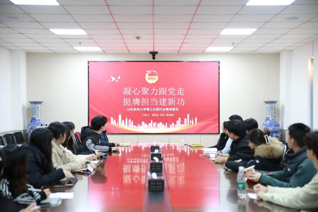 会议集中学习了校团委书记高一丹在在共青团山东科技大学第三次代表大会上作的题为《凝心聚力跟党走挺膺担当建新功为全面建设工科主导、特色鲜明的高水平应用研究型大学贡献青春力量》的工作报告。报告全面客观地总结了学校第二次团代会以来的共青团工作,深刻分析共青团工作面临形势与挑战,提出未来五年将以实施“青・志”青春铸魂工程、“青・锋”青春挺膺工程、“青・耘”青春托举工程、“青・筑”青春强基工程为总抓手,细化落实十二项青春行动,团结带领广大团员青年在全面建设工科主导、特色鲜明的高水平应用研究型大学的生动实践中,在强国建设、民族复兴的伟大征程中,书写无愧于时代、无愧于历史、无愧于人民的青春华章。徐乐、郑思远、杨斐然等三位团代表作交流分享,深入领学报告精神。