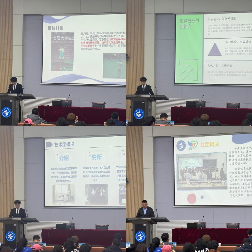 为进一步加强校园社团建设,激发社团活力,充分发挥优秀社团的示范引领作用,丰富校园生活,3月31日,济南校区优秀社团答辩会在主楼109教室顺利开展。各社团指导老师和学生代表组成评审团,来自不同年级、专业的学生共同参与本次活动。