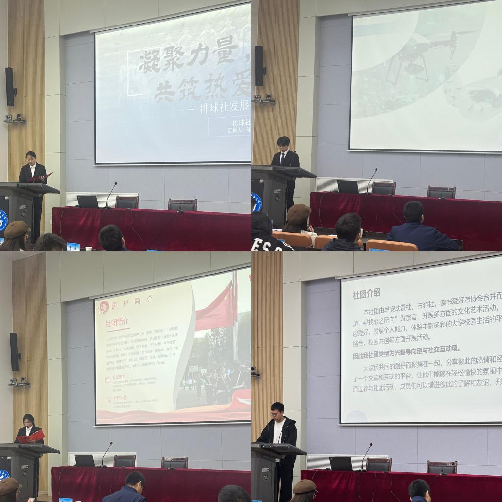 答辩现场采用“成果汇报+现场问答”的形式,各社团代表依次登台,围绕社团宗旨、组织架构建设、年度特色活动开展、成员成长收获、品牌项目打造、未来发展规划等核心内容,通过PPT演示、图文讲解、成果展示等多种方式,全面呈现社团一年来的建设成果与发展亮点。