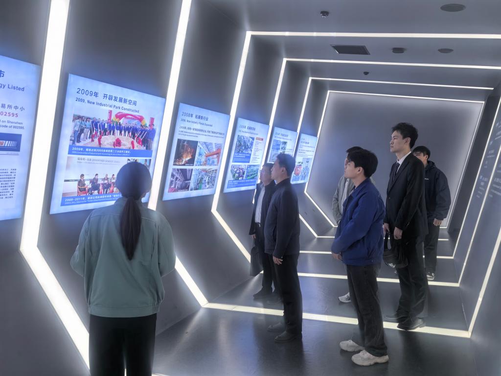 孙国强一行在企业负责人陪同下参观了豪迈科技展厅,详细了解企业发展历程、核心业务、技术创新及全球布局。一个个模型、一幅幅图片,让师生直观感受到这家充满活力的民营企业所具备的强大竞争力、务实严谨的企业文化以及广阔多元的发展平台,从而打破了学生在求职过程中对民营企业存在的信息壁垒。