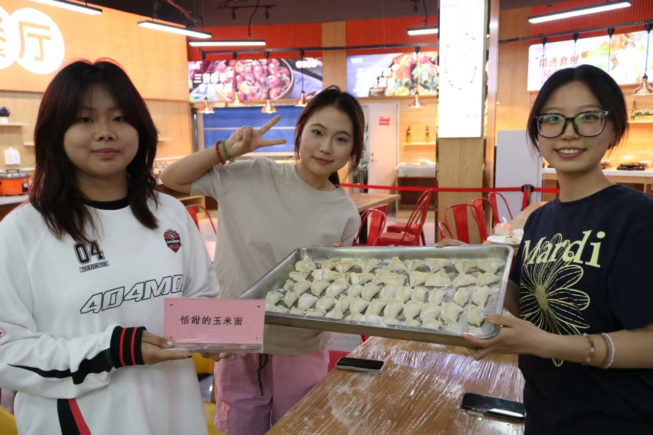 比赛邀请食堂经理、教科部老师以及学生代表作为评委,主持人介绍活动背景及规则后,比赛开始。各组成员分工明确,揉面、擀皮、填馅、捏褶,现场气氛热烈,更有同学将传统文化中吉祥如意的寓意融入比赛,设计出造型独特的饺子。
