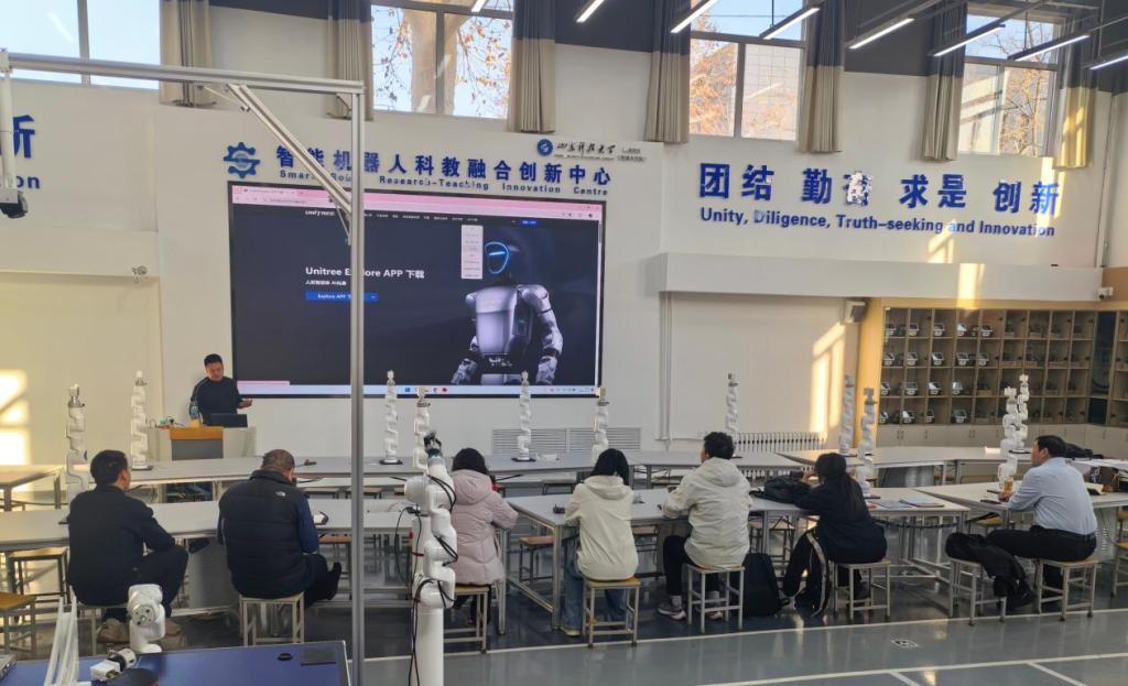 为进一步深化科教融合,提升师生在智能机器人领域的实践能力与创新素养,近日,山东科技大学智能机器人科教融合创新中心精心组织三场专项培训,聚焦Unitree G1人形机器人、Unitree Go2-W四足机器人、TRON1多形态机器人及SU17科研版无人机四大核心设备,为师生呈上兼具专业性与实用性的技术盛宴。