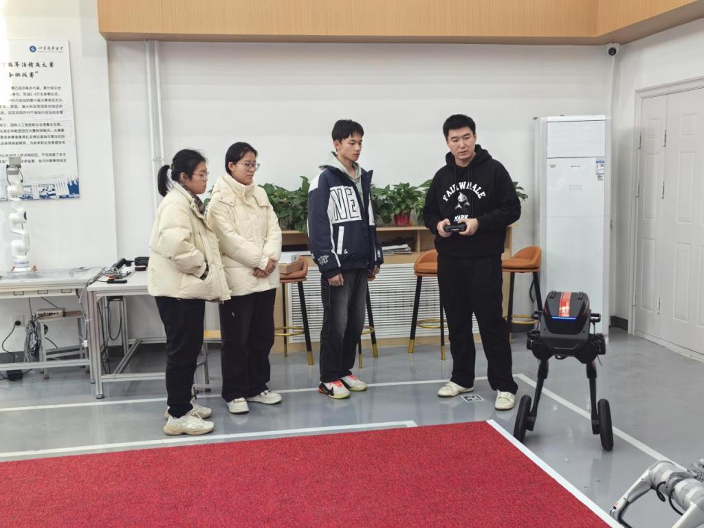 “四足机器人实操与二次开发”培训聚焦Unitree Go2-W四足机器人,讲师详细介绍了设备16自由度力控系统的工作机制、4D激光雷达全向感知技术的应用场景,以及铝合金与高强度塑料机身的耐用性设计优势。培训过程中,通过现场演示开关机、网络连接、遥控器绑定等基础操作,结合图传交互、录音播放、远程连接等功能实操,助力师生快速掌握设备使用技巧,同时分享二次开发相关的SDK资源与技术路径,激发创新探索热情。