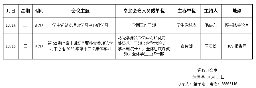 济南校区第七周会议安排