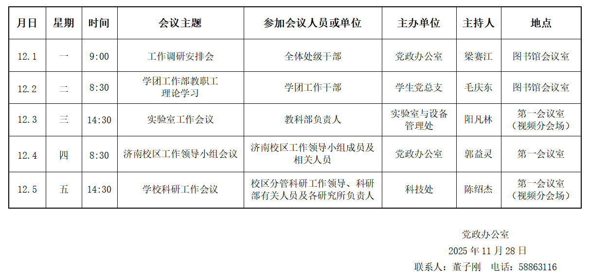 济南校区第十五周会议安排