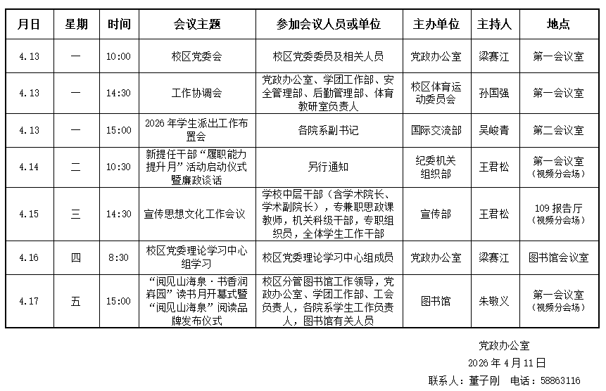 济南校区第六周会议安排