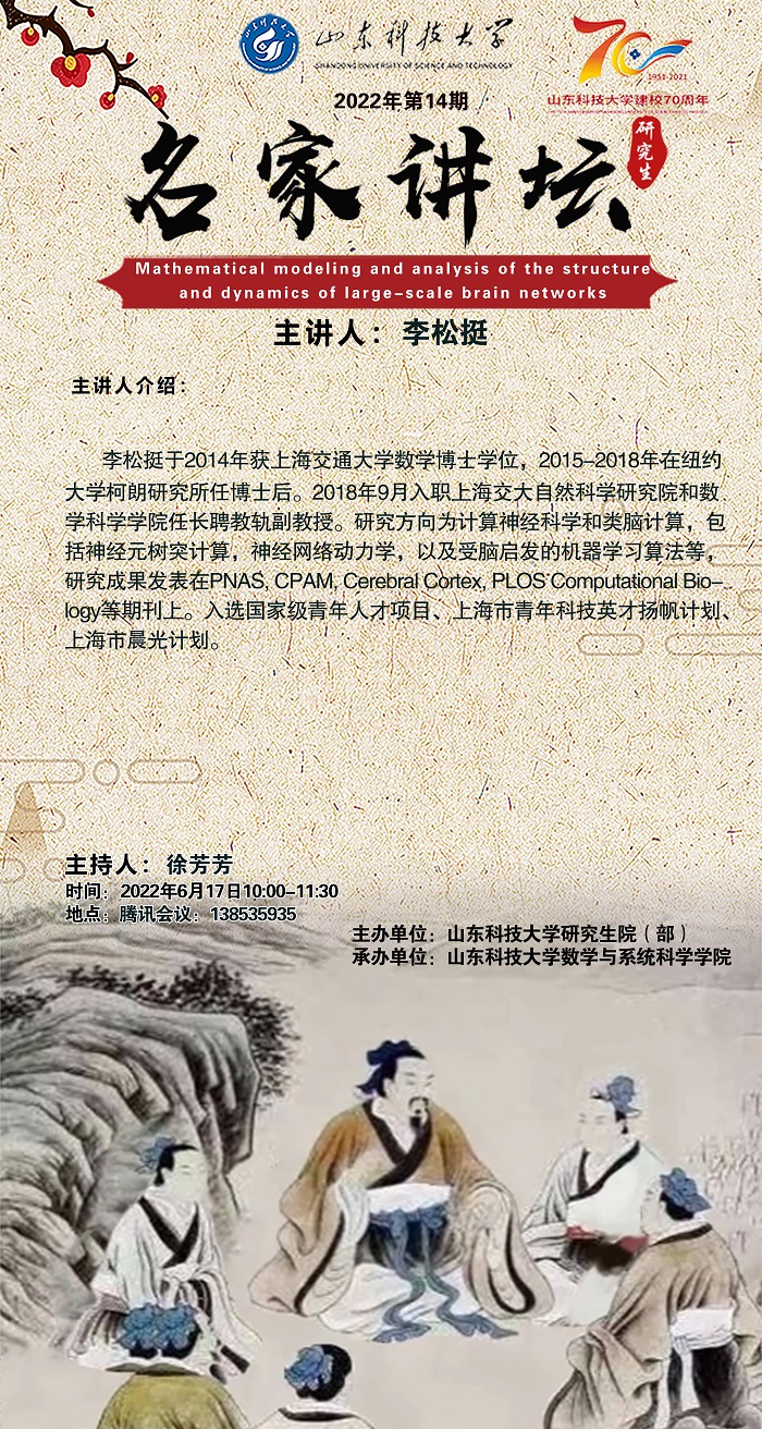 “名家讲坛”2022年第14期:Mathematical modeling and analysis of the structure and dynamics of large-scale brain networks(总779期)