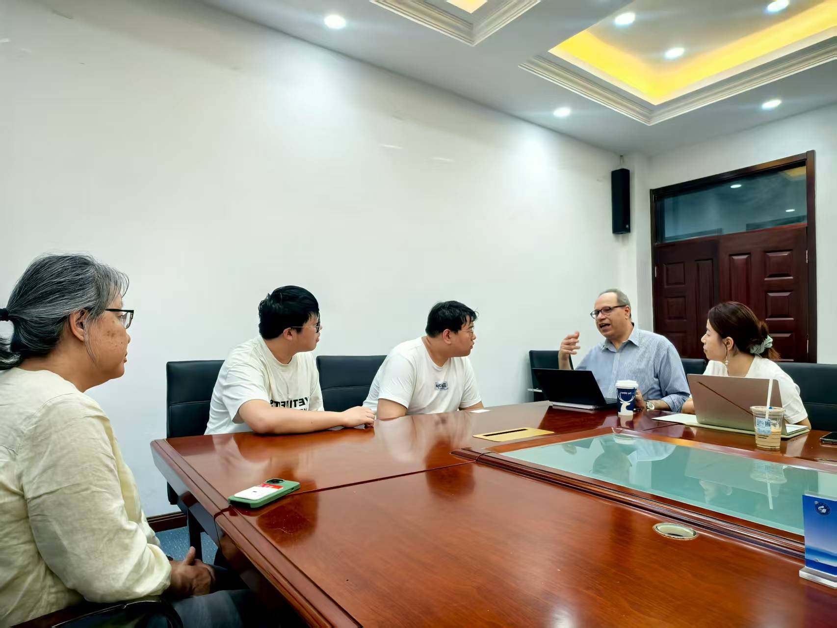 会议期间,Emad Gad 院长与研究生张政、田啟琛进行了亲切交流,细致询问两人本科专业基础、学术兴趣方向及对未来研究领域的设想,同时系统介绍了斯威本科技大学工程学院的优质教学资源,涵盖杰出导师团队、先进实验设备及校企合作平台等。两位学生积极分享自身学术规划,主动表达赴斯威本科技大学继续深造的强烈意愿,现场互动频繁、氛围融洽。Emad Gad 院长对两位学生展现出的学术潜力给予高度肯定,结合学科发展趋势为他们的科研方向提出建设性建议,并对其未来在国际学术平台上的发展寄予殷切期望。