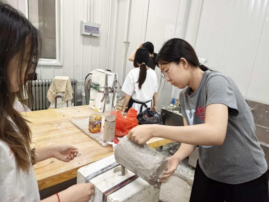 交流会后,孙国强一行实地参观了山东工艺美术学院现代手工艺术学院师生作品展厅及部分专业工作室,直观感受了该校浓厚的实践教学氛围与鲜明的办学特色。考察最后,一行人专程看望了正在此处开展实习的斯威本学院 2022 级工业设计专业师生,关切询问了实习进展与生活情况。