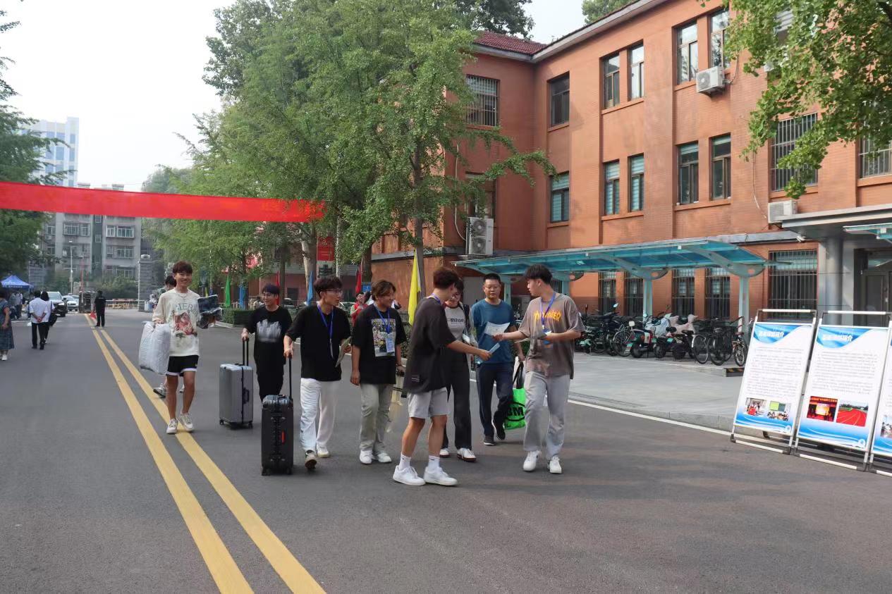 为做好新生报到工作,学院组织学生兼职辅导员深入宿舍打扫卫生,检查宿舍设施,招募迎新志愿者并进行前期培训。报到现场,志愿者们主动带路、帮忙搬运行李,为新生介绍校园设施,帮助新生快速了解校园环境。
