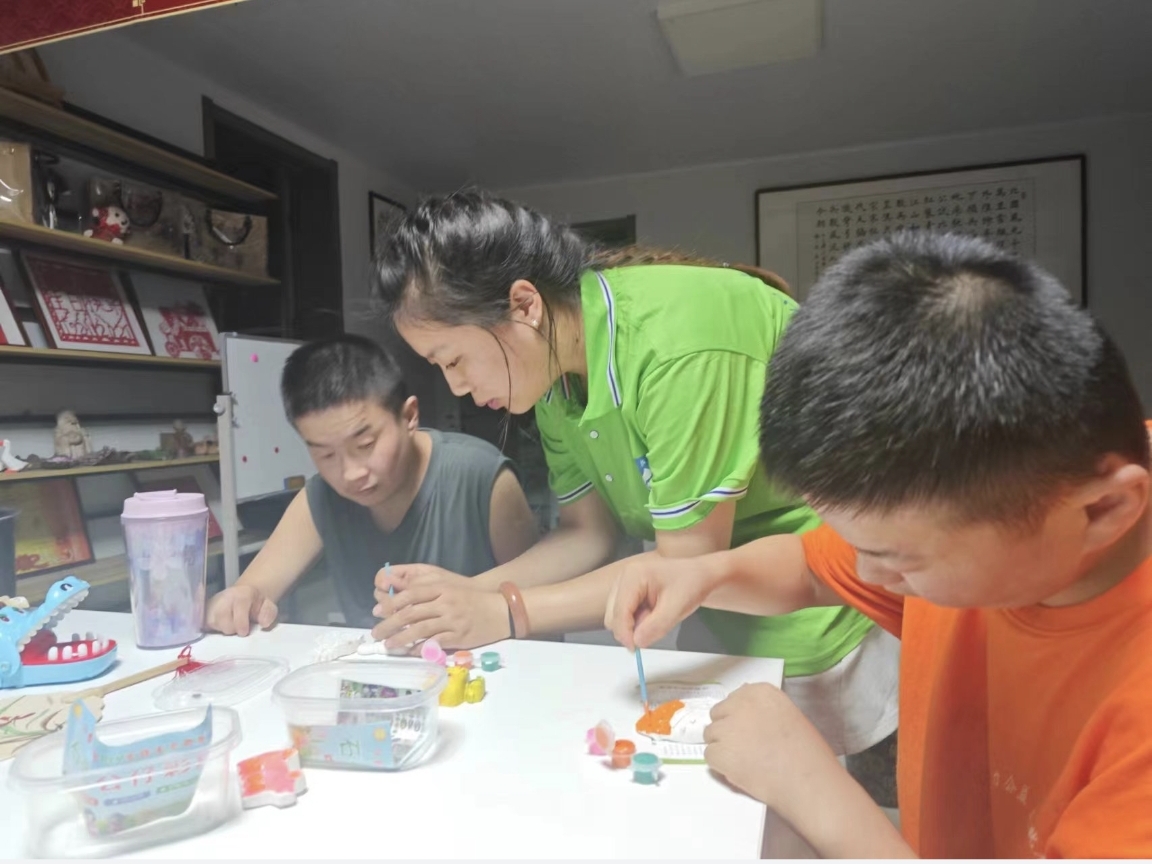共享阳光实践队来到潍坊惟爱助残公益服务中心开展此次实践活动,实践队从生活、学习等多方面着手关爱儿童,制定了包括美术、数学、体育等多课程的陪伴计划,并捐赠了刮画笔和石膏娃娃等儿童手工玩具。活动期间,队员们对儿童的关爱无微不至,从照顾盲童吃饭、作业辅导,到手把手教儿童们剪纸、涂鸦,再到晚间开展义卖活动培养智力障碍儿童人际交往能力,儿童们的笑容让每一天的陪伴充满意义,也让队员们在关爱弱势群体过程中成长。