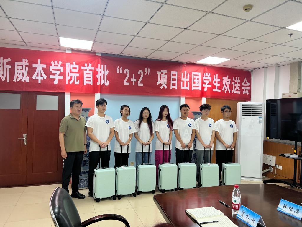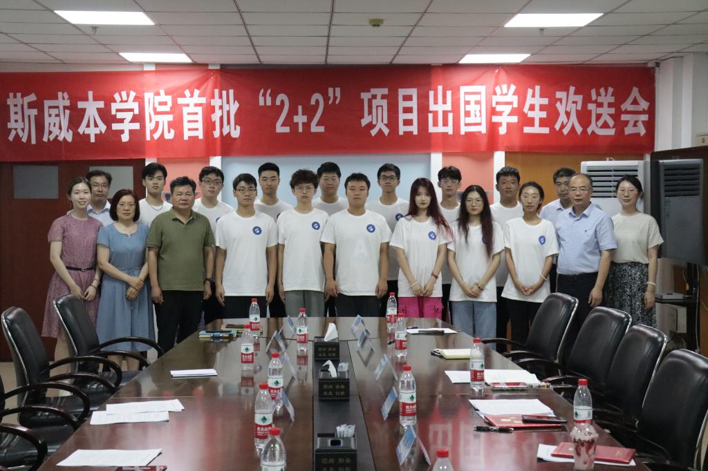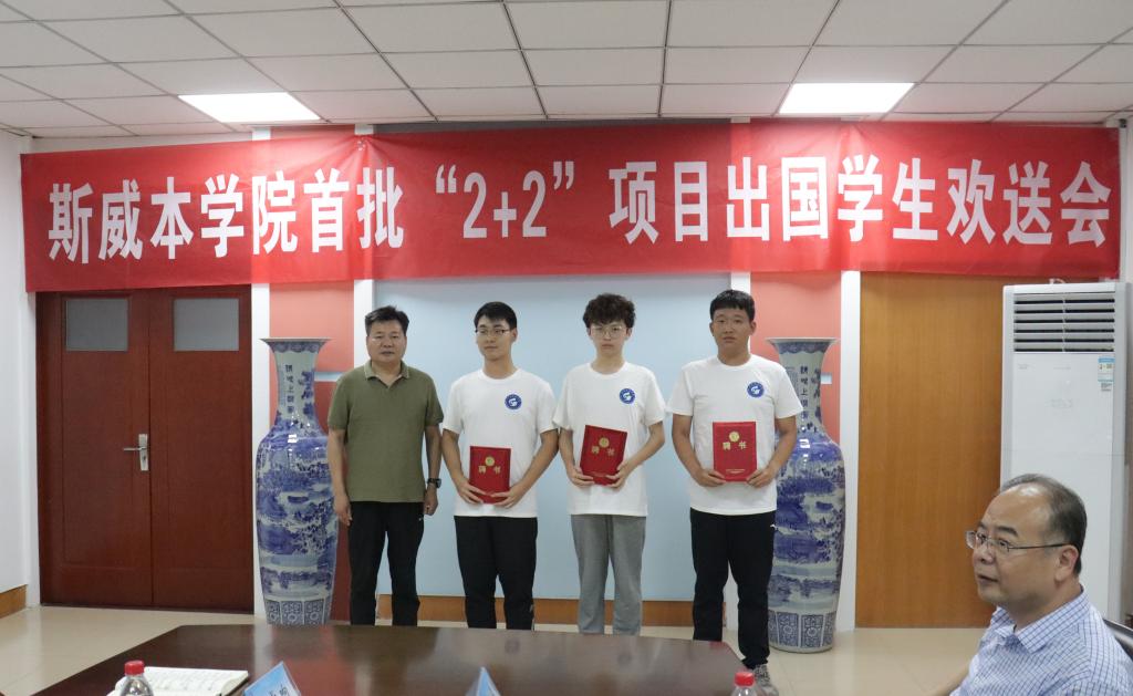 会上,吴峻青宣读了首批“2+2”项目出国学生名单和关于成立斯威本学院留学生联谊会的决定。赵长青做了行前讲话,他从人身安全、财产安全、意识形态安全和总体国家安全观四个方面,提醒同学们强化安全意识,希望同学们坚定文化自信,理解普世价值,增强做中国人的自豪感,在国外学习过程中自觉维护祖国形象,展现中国当代大学生的良好形象。2+2项目学生代表刘宗昊发言,表达了对学校的深情感恩、恋恋不舍之情,表示将牢记学校和老师们嘱托,秉承“惟真求新”的校训,锚定奋斗目标,坚持不懈学习,互帮互助,学有所成,用实际行动为学校和祖国增光添彩。