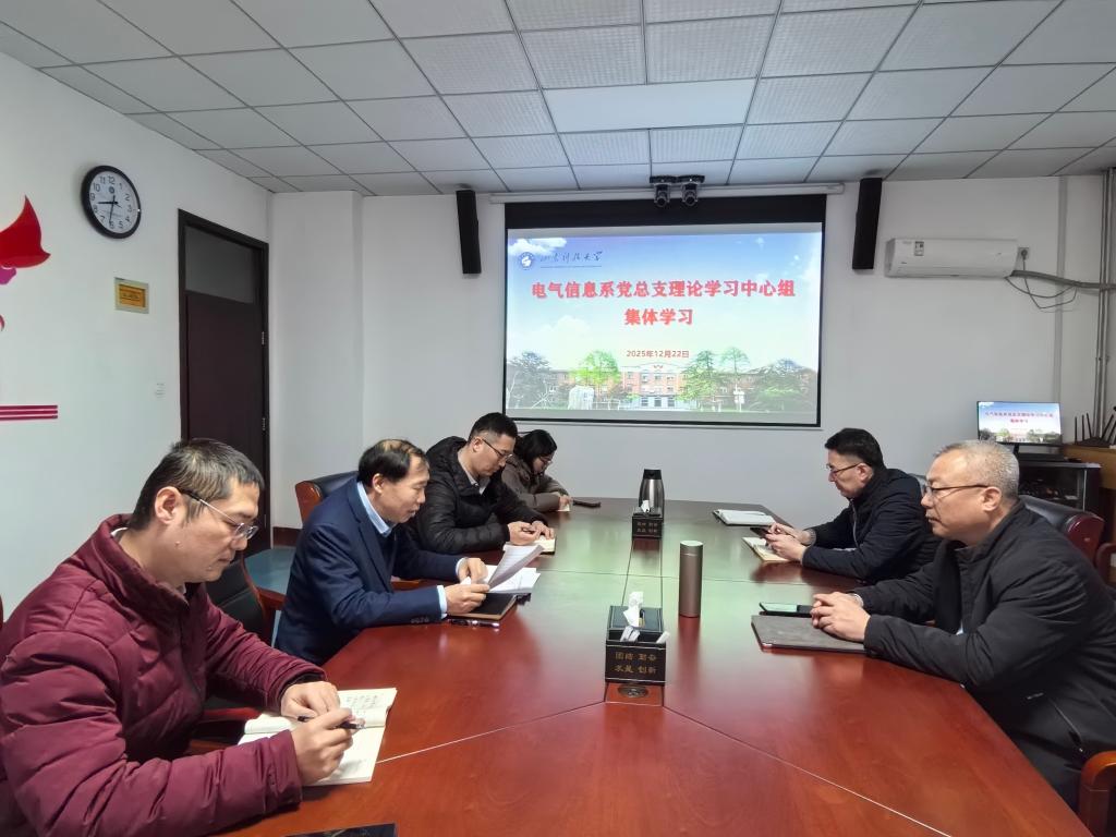 12月22日,电气信息系党总支理论学习中心组在第二会议室开展集体学习。党总支书记毛庆东主持学习,党总支理论学习中心组成员、支部书记参加学习。