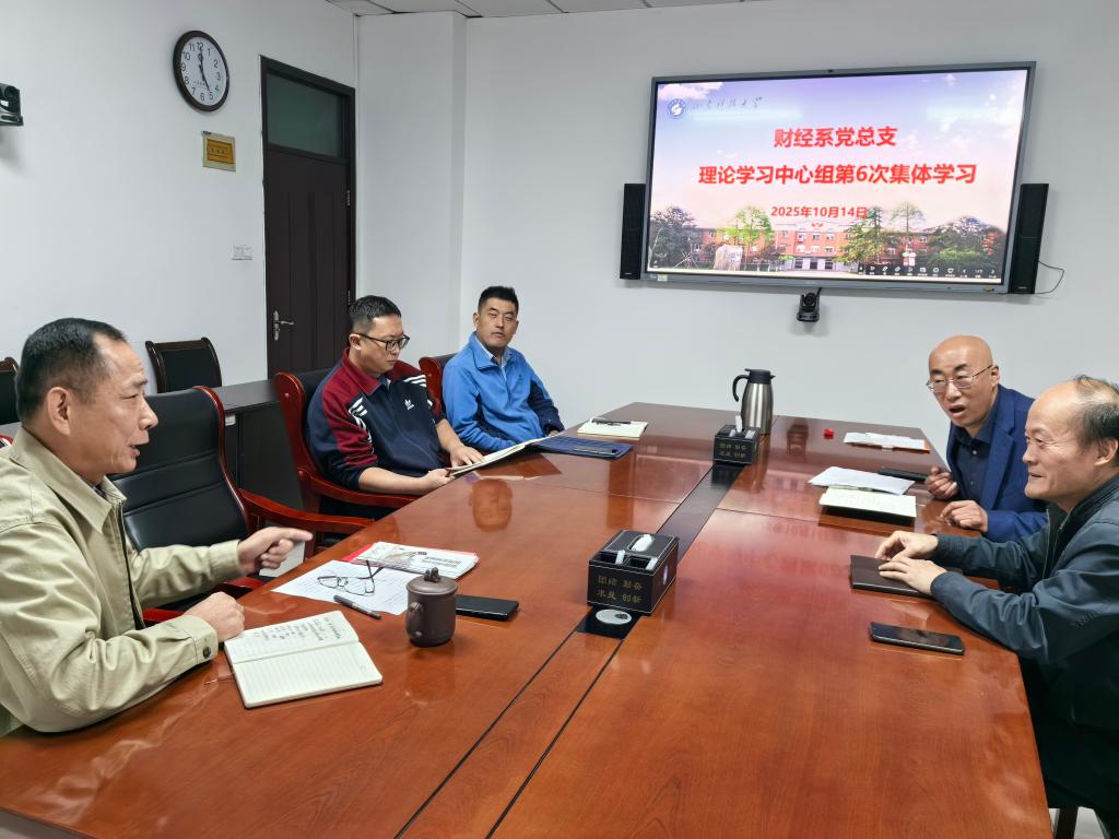 10月14日,财经系党总支理论学习中心组在第一会议室召开第六次集体学习。会议由系党总支书记仉兴泉主持,中心组全体成员参加。