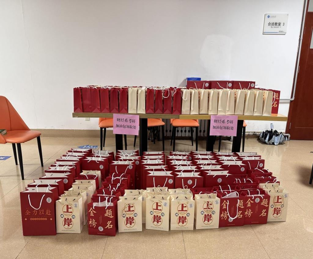 随着2024年全国研究生考试的临近,为缓解考生压力,坚定备考信心。12月15日,财经系为考研学子精心准备了考研“加油包”,在寒冷的冬日为考研学子送去暖心的祝福。