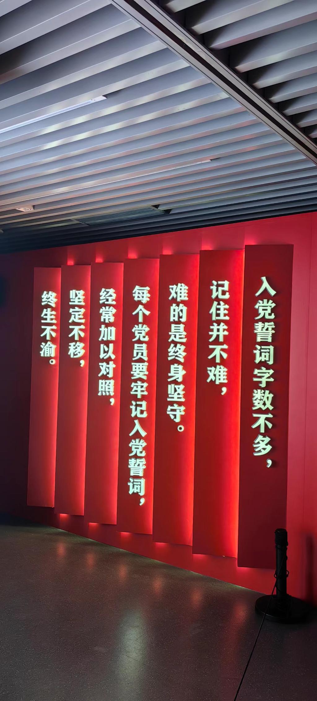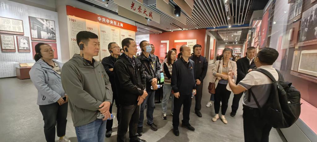 学习人员来到中国共产党第一次全国代表大会纪念馆,纪念馆由“前赴后继,救亡图存”“民族觉醒,主义抉择”“早期组织,星火初燃”“开天辟地,日出东方”“砥砺前行,光辉历程”“不忘初心,牢记使命”等7个展区组成,纪念馆内陈列了着大量的历史文物、照片和文件,展现了伟大的中国共产党历经百年风雨沧桑,从前赴后继,救亡图存到早期组织,星火初燃直至开天辟地的百年奋艰苦历程。“入党誓词字数不多,记住并不难,难的是终身坚守。每个党员要牢记入党誓词,经常加以对照,坚定不移,终身不渝。”参观人员驻足在“永恒的誓言”专题展区,神情凝重的观看着这段话,听到青年讲解员用铿锵有力的声音声情并茂地讲述着一批批以行动践“誓”、以生命诠“誓”的光辉典范事迹时,无不为之动容。