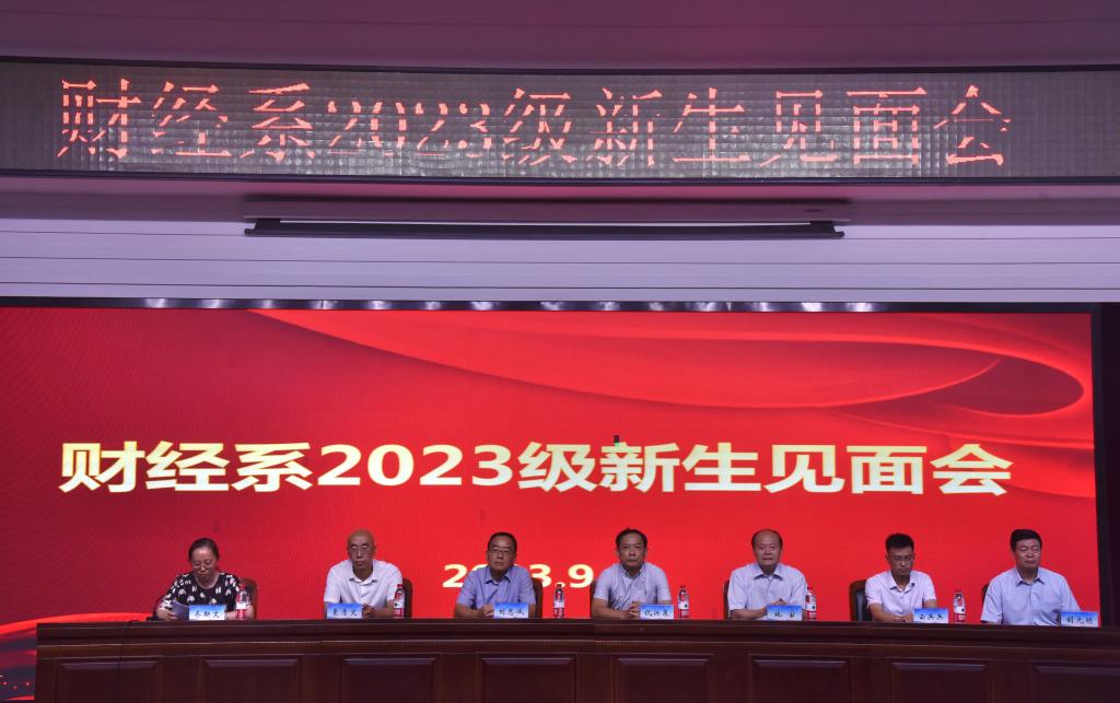 9月8日下午,财经系在图书馆报告厅召开2023级新生见面会。财经系党政领导班子成员出席会议,财经系学生工作干部与2023级全体学生参加会议,会议由财经系学生工作办公室主任、团总支书记齐斯文主持。