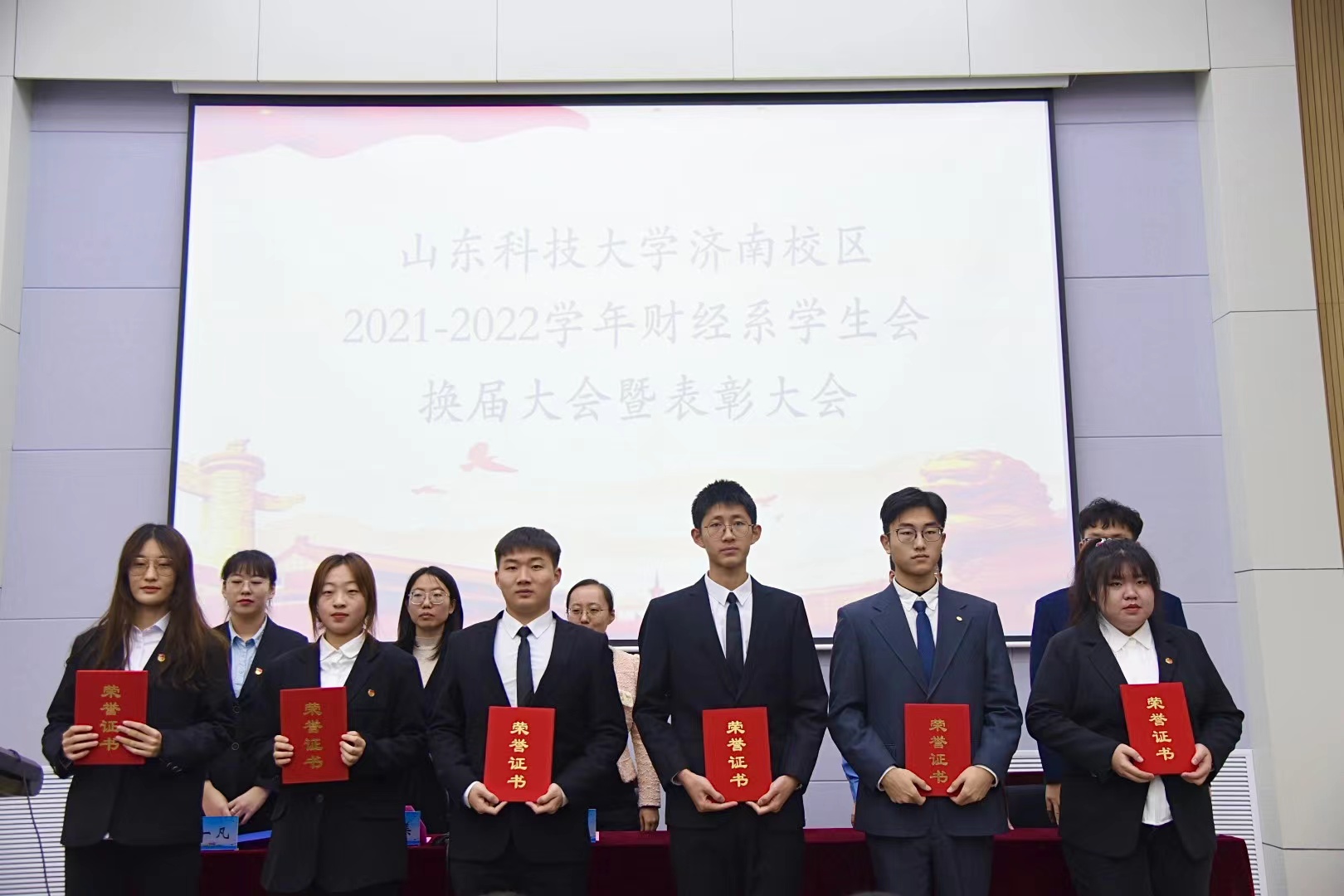 11月9日,财经系学生会在1-109报告厅举行2021-2022学年换届暨总结表彰大会。财经系学生工作办公室主任、团总支书记齐斯文,辅导员周亚玲、魏寿美、王璞参加会议。会议由魏寿美主持。