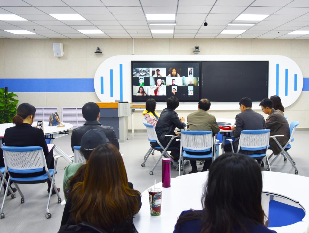 10月26日下午4:00,财经系在智慧教室召开2017级中英项目出国线上欢送会。财经系党总支书记仉兴泉、财经系主任施宙、财经系党总支副书记、副主任云兵兵、国际交流合作处济南校区国际交流与合作办公室正科级干部杨朋、教学科研部教务科科长王峰出席会议,财经系辅导员和金融教研室教师代表、2018级金融学学生代表参加会议,2017级中英项目出国学生线上参加会议。会议由金融教研室主任汤巍主持。