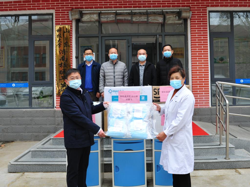 两人都是科大校友的胡鹏飞夫妇有着深深的母校情节,遇到事儿喜欢跟老师聊聊天儿,听听老师的意见。2016年暑期他们听从一个学妹那里得知辅导员老师带队到聊城开展运河文化暑期社会实践调研后,主动帮忙联络文化馆等单位,热情地招待学弟学妹。在疫情防控中安全复产一个多月的胡鹏飞深知防控物资的重要性,他从跟胡宝征老师聊天中得知,母校管理人员已经上班,目前正在为开学前防控工作做准备时,主动表示要为母校捐赠1万枚口罩,分两批寄给母校。