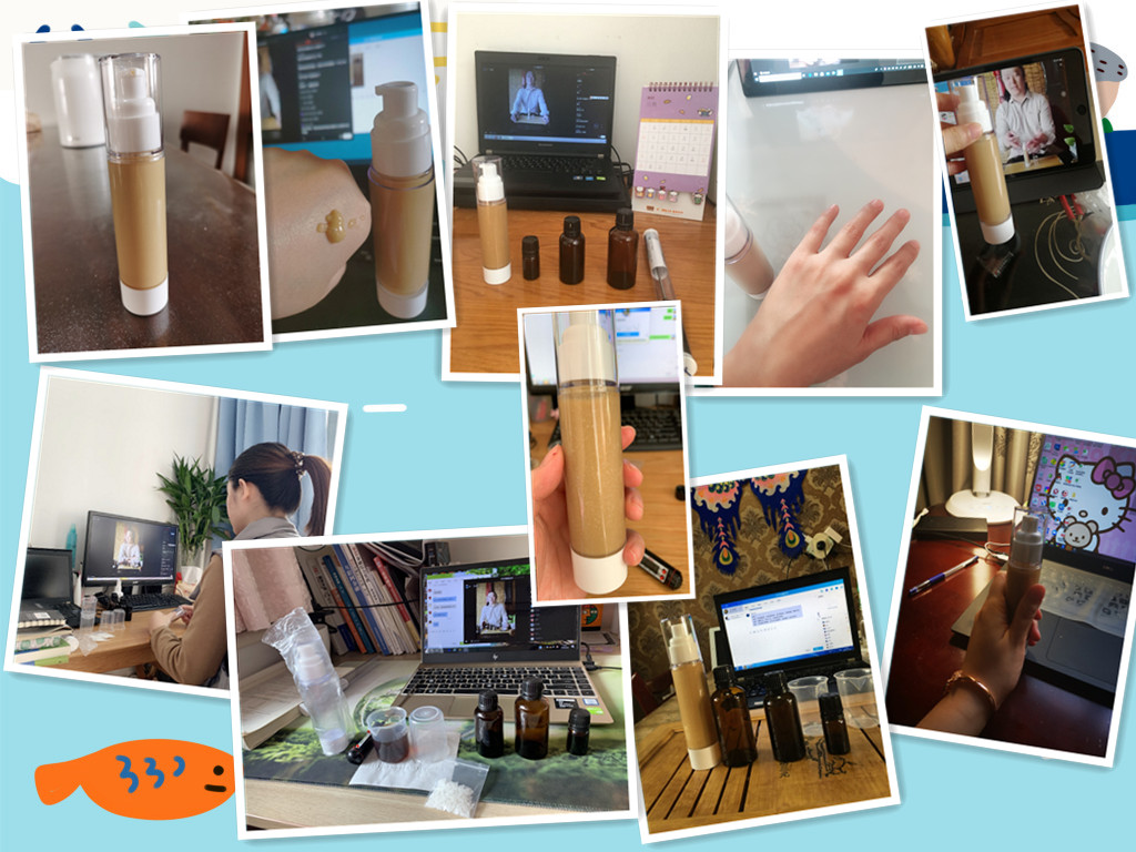 针对性较强的“春暖花开”护手霜手作活动在线上开启,手作大师与老师们“云端”相见,在冬春交际、春寒料峭之时温暖心弦、滋润双手。为做好疫情防控,保证活动顺利开展,系工会提前一天把护手霜手作原料挨家挨户送到每一位女教职工手上。3月8日上午,手作活动在QQ群课堂举行,大家在专业老师的网上连线指导下开始了制作步骤:加热油脂、添加橄榄蜡、倒入提取液、搅拌冷却、添加精油、灌装入瓶。大家听得认真、做得专注,一个小时后,手中的原料变成了一瓶瓶滋润、醇香的护手霜,大家都乐在其中,在直播间的互动中,大家纷纷晒出了自己的作品,每个人都洋溢着幸福的微笑。
