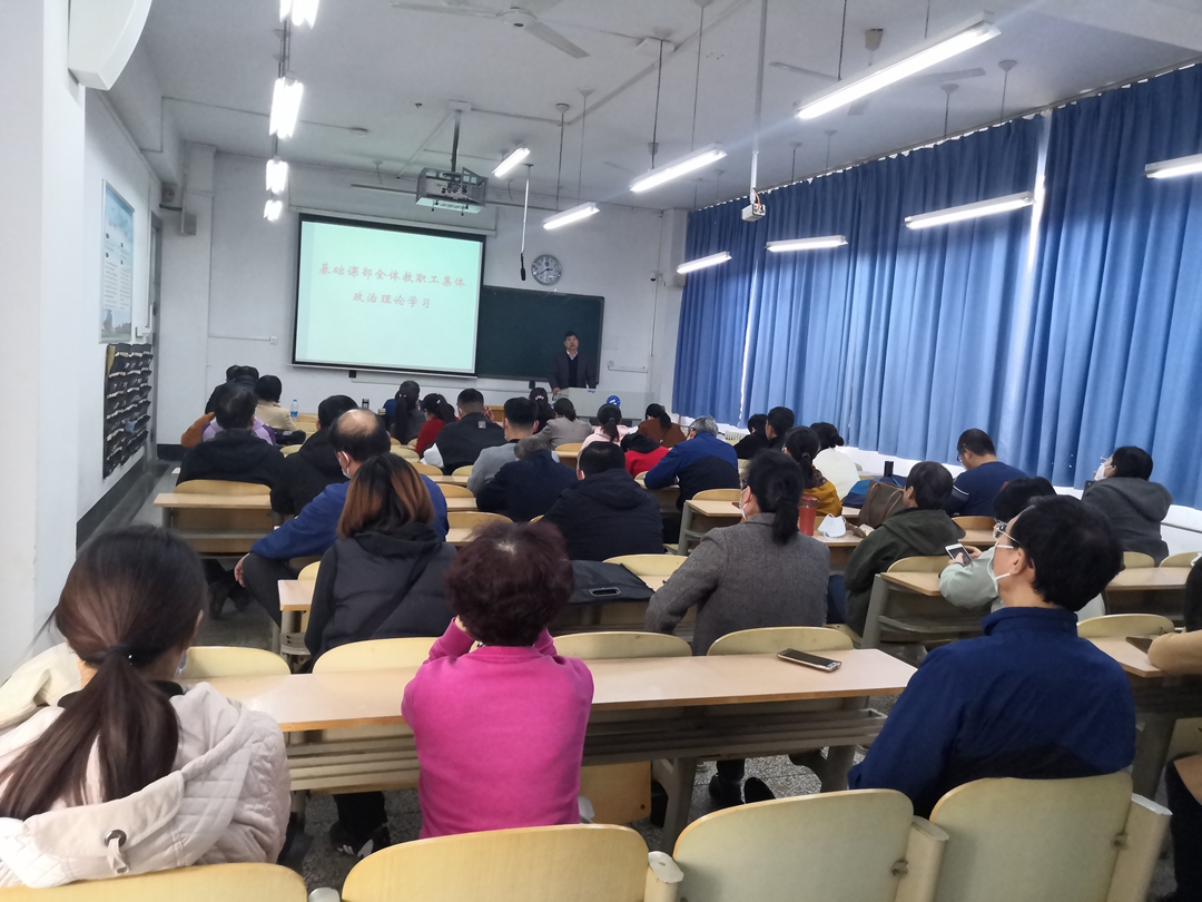 10月26日下午,基础课部在教学主楼502教室召开全体教职工会议,进行集体政治理论学习,会议由基础课部党总支书记、主任管清佩主持,基础课部全体教职工参加会议。