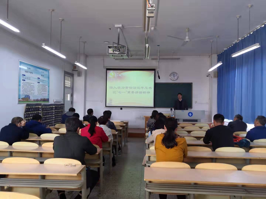 10月12日下午,基础课部党总支在主楼502会议室召开党员大会,党总支书记、主任管清佩为全体党员上《深入学习贯彻习近平总书记“七一”重要讲话精神》党课。