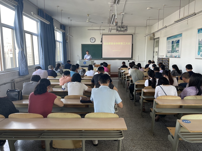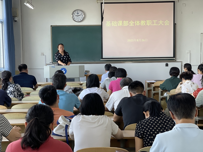 8月26日,基础课部在主楼501教室召开会议进行常态化疫情防控知识培训和新学期工作布置,基础课部全体教职工参加了会议,会议由基础课部党总支书记、主任管清佩主持。