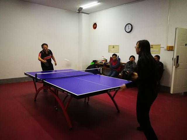 1日下午的乒乓球比赛,参赛的16位选手身着运动服早早来到比赛场地,按照抽签得出的比赛顺序依次进行对决。首先是三局两胜的淘汰赛,当男女选手相遇时,女选手拥有2分领先权。因此,比赛虽然不分男女,但依然精彩纷呈、扣人心弦。半决赛决赛改用了五局三胜的赛制,令冠军之战显得分外紧张、悬念迭起。经过选手们的奋力拼搏,最后蔡磊老师捧冠而归,高国成老师获得亚军,黄凤萍老师与吕濯缨老师并列季军。